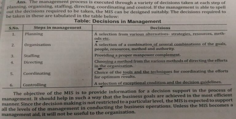 MIS- A Support to the Management